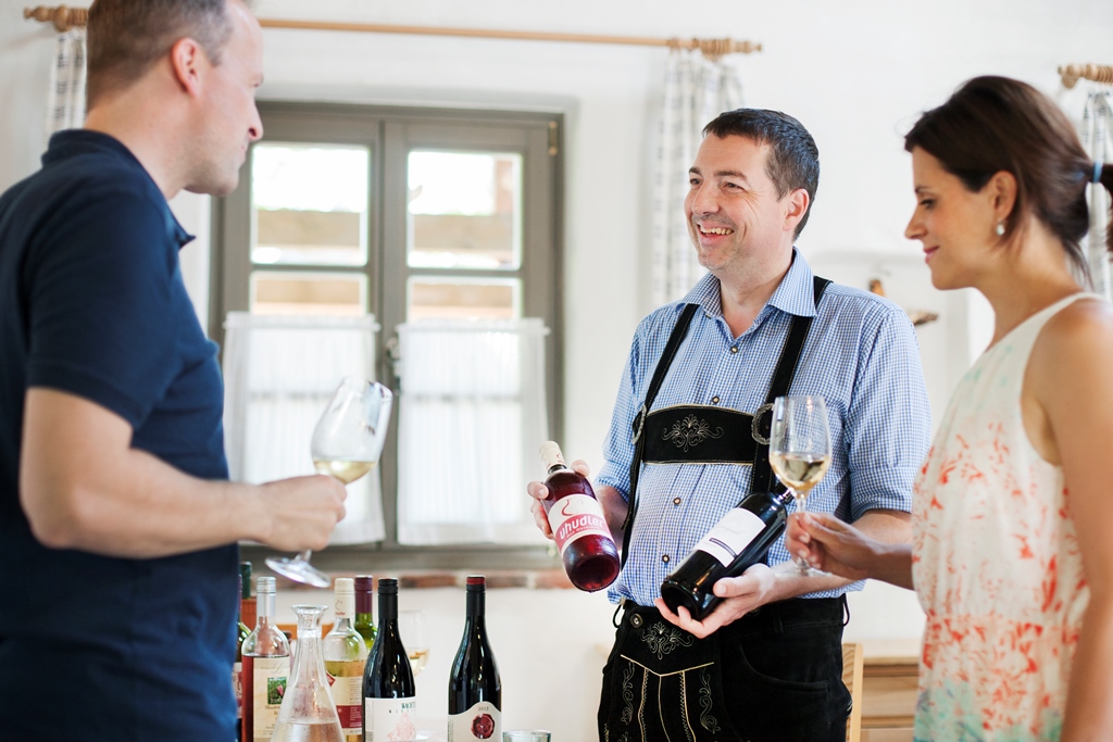 Gerne können Sie es auch „all inclusive“ buchen. Weine aus dem eigenen Weingarten (auch Uhudler) sowie prickelndes und stilles Mineralwasser, Traubensaft für 3 Stunden zum Preis von 39,90 pro Person.